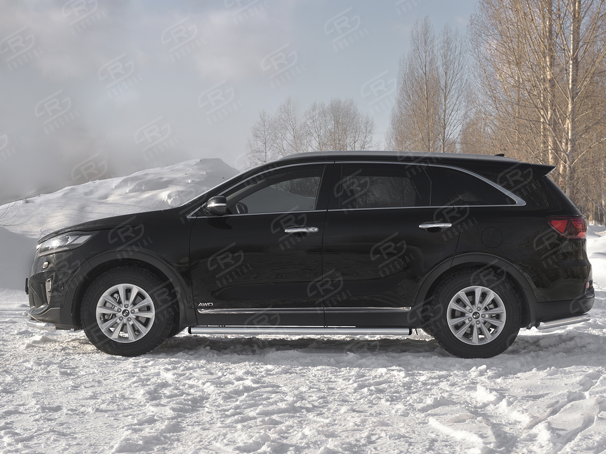 KIA SORENTO PRIME 2018- Пороги труба d63 (вариант 2) KSPT-0031392 производится из итальянской нержавеющей высококачественной полированной стали марки AISI 304. Идеально подходит по заводским параметрам, и устанавливается без дополнительных изменений в кузове. Вся продукция сертифицирована. Мы производим аксессуары с 2006 года. В распоряжении компании имеются собственные производственные площадки, поэтому вся работа производится без подрядчиков и посредников.