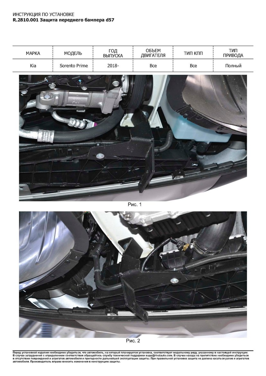 Фото Защита переднего бампера d57 Kia Sorento Prime 2018-