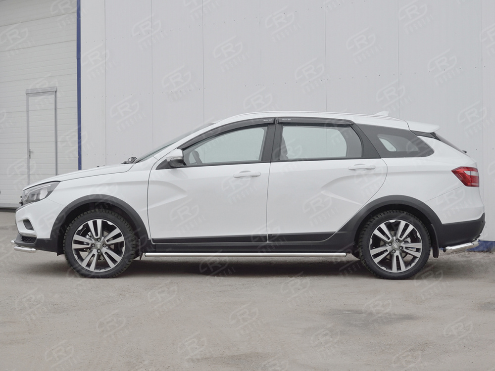 LADA VESTA SW CROSS 2017- Пороги труба d42 (вариант 3) LVT-0028503 производится из итальянской нержавеющей высококачественной полированной стали марки AISI 304. Идеально подходит по заводским параметрам, и устанавливается без дополнительных изменений в кузове. Вся продукция сертифицирована. Мы производим аксессуары с 2006 года. В распоряжении компании имеются собственные производственные площадки, поэтому вся работа производится без подрядчиков и посредников.