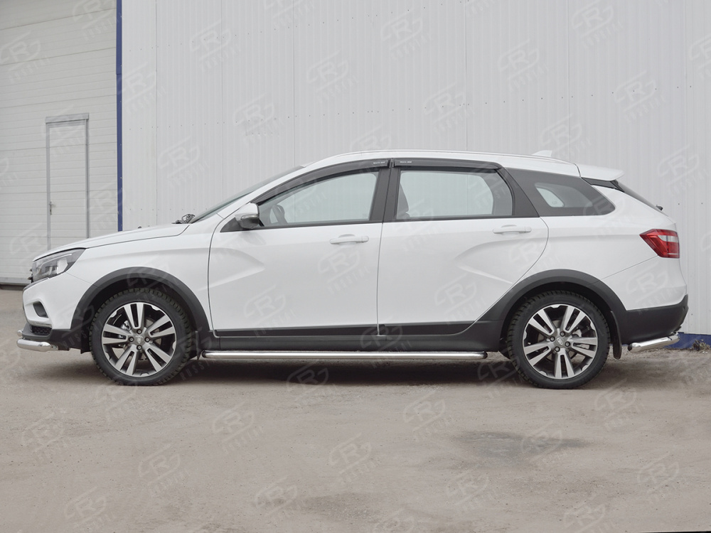LADA VESTA SW CROSS 2017- Пороги труба d42 с листом (Лист алюм, проф. нерж) (вариант 1) LVL-0028481 производится из итальянской нержавеющей высококачественной полированной стали марки AISI 304. Идеально подходит по заводским параметрам, и устанавливается без дополнительных изменений в кузове. Вся продукция сертифицирована. Мы производим аксессуары с 2006 года. В распоряжении компании имеются собственные производственные площадки, поэтому вся работа производится без подрядчиков и посредников.