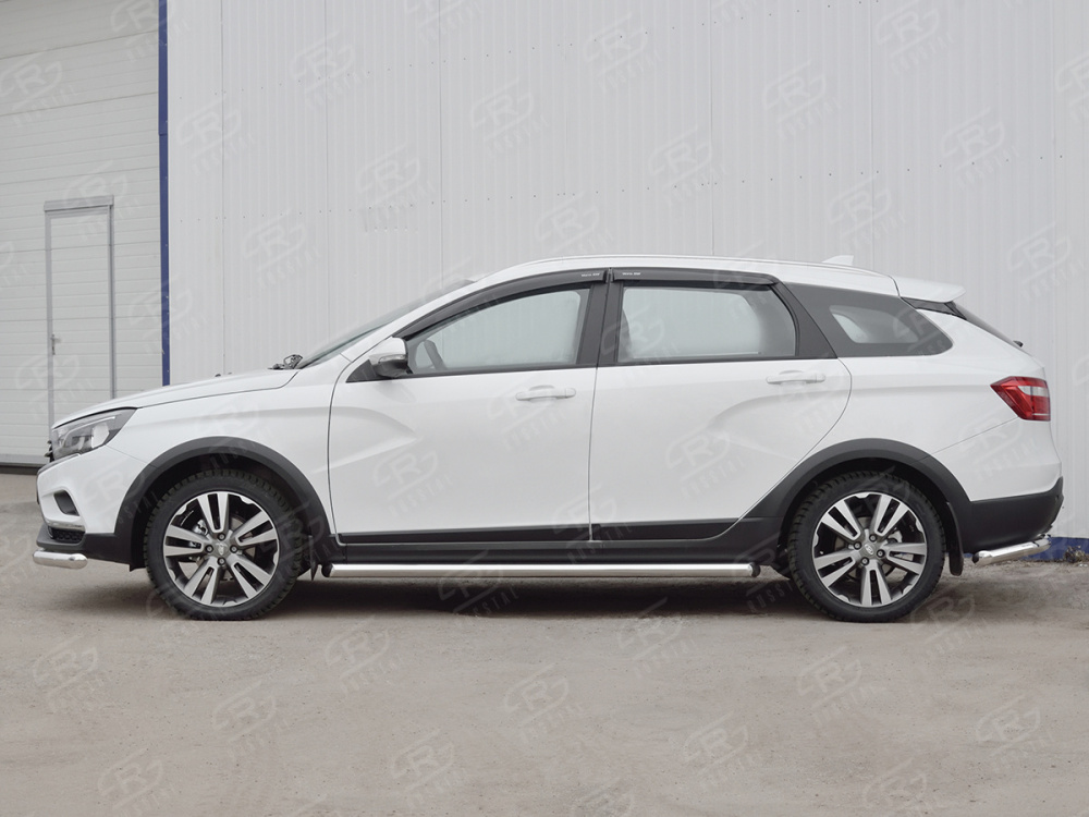 LADA VESTA SW CROSS 2017- Пороги труба d63 (вариант 1) LVT-0028491 производится из итальянской нержавеющей высококачественной полированной стали марки AISI 304. Идеально подходит по заводским параметрам, и устанавливается без дополнительных изменений в кузове. Вся продукция сертифицирована. Мы производим аксессуары с 2006 года. В распоряжении компании имеются собственные производственные площадки, поэтому вся работа производится без подрядчиков и посредников.