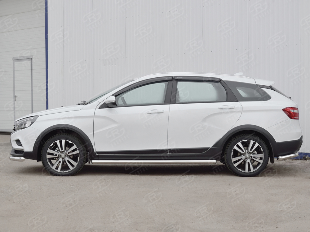LADA VESTA SW CROSS 2017- Пороги труба d63 (вариант 3) LVT-0028493 производится из итальянской нержавеющей высококачественной полированной стали марки AISI 304. Идеально подходит по заводским параметрам, и устанавливается без дополнительных изменений в кузове. Вся продукция сертифицирована. Мы производим аксессуары с 2006 года. В распоряжении компании имеются собственные производственные площадки, поэтому вся работа производится без подрядчиков и посредников.