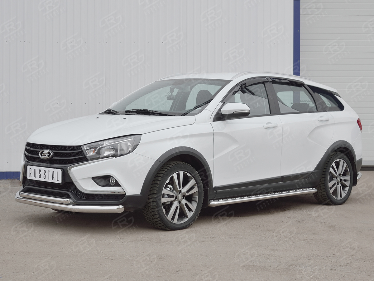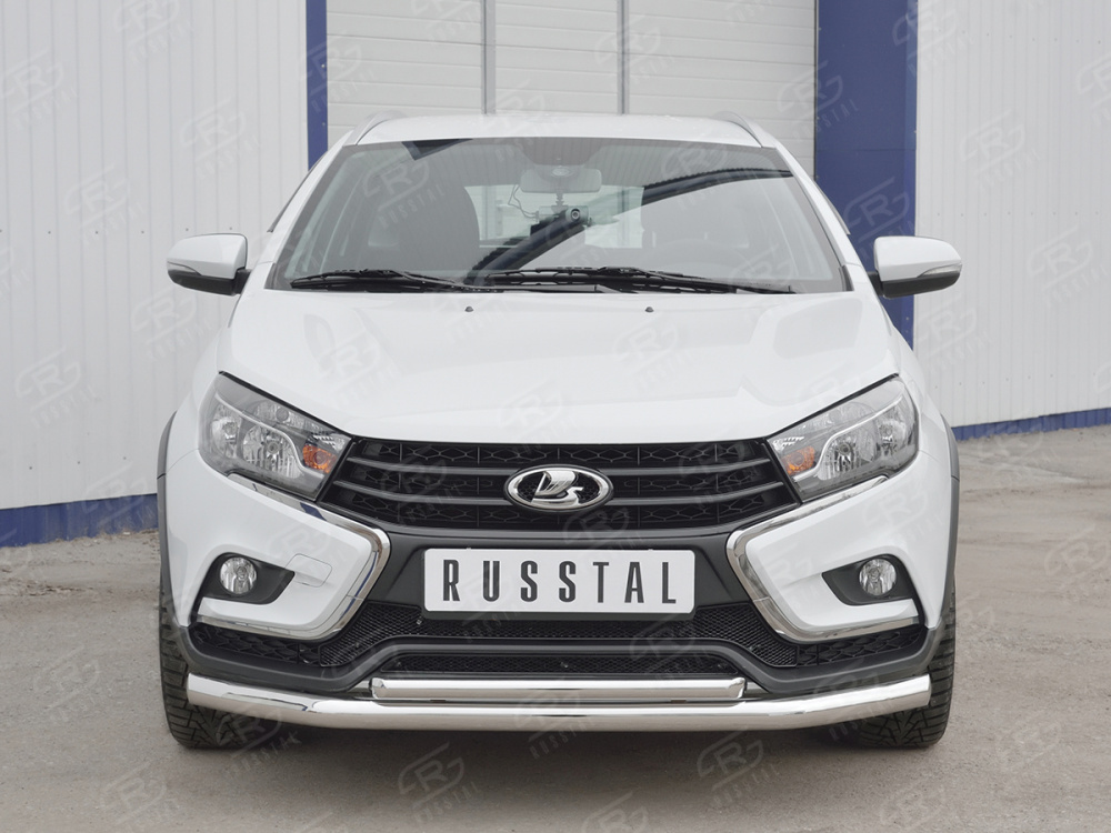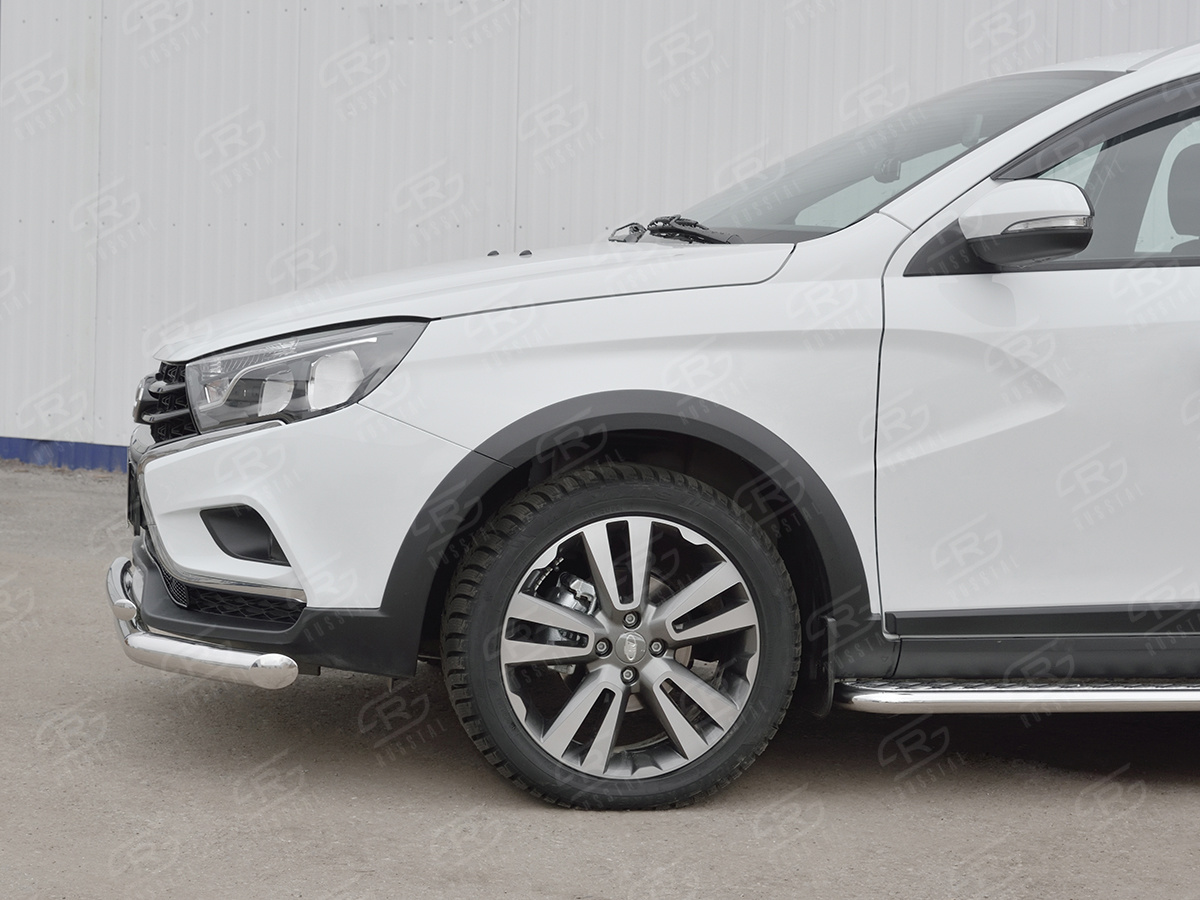 LADA VESTA SW CROSS 2017- Защита переднего бампера d63 секции-d42 дуга LVZ-002847 производится из итальянской нержавеющей высококачественной полированной стали марки AISI 304. Идеально подходит по заводским параметрам, и устанавливается без дополнительных изменений в кузове. Вся продукция сертифицирована. Мы производим аксессуары с 2006 года. В распоряжении компании имеются собственные производственные площадки, поэтому вся работа производится без подрядчиков и посредников.