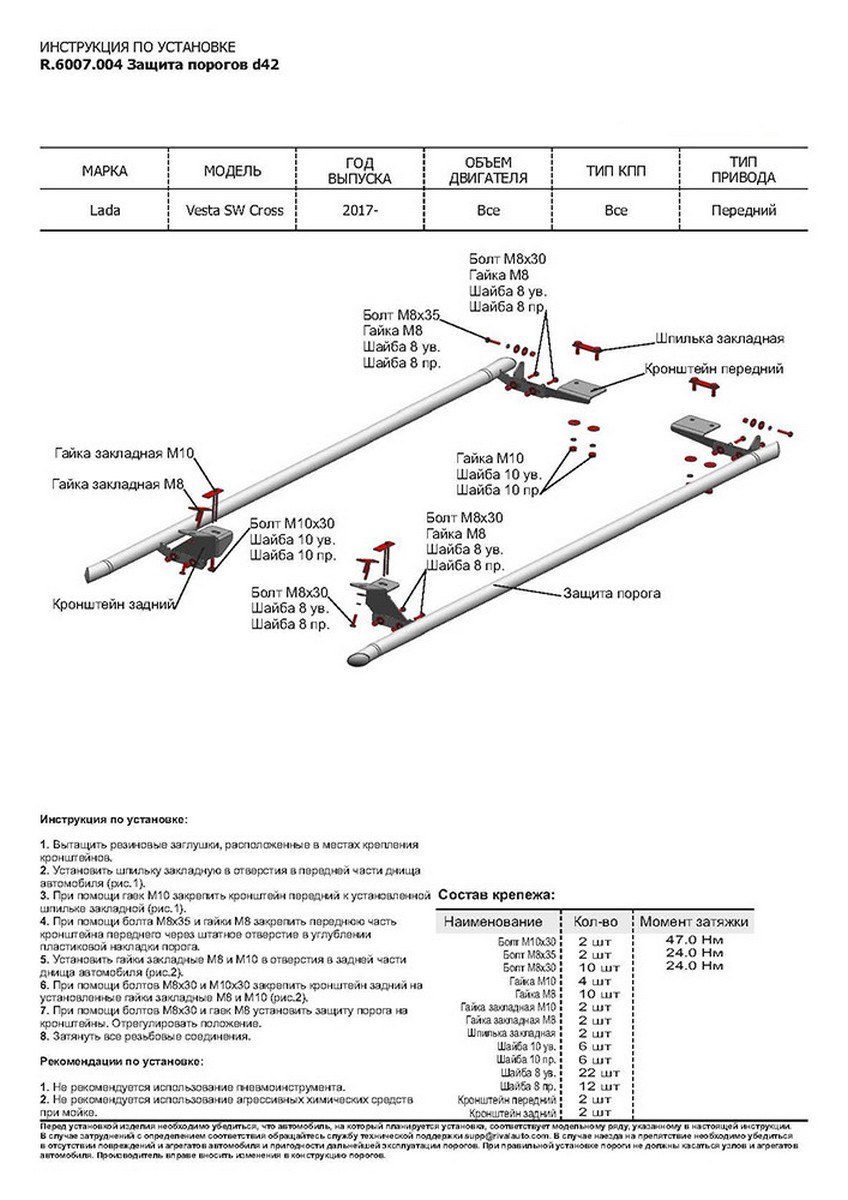 - Установка в штатные места крепления не требует дополнительной доработки автомобиля.