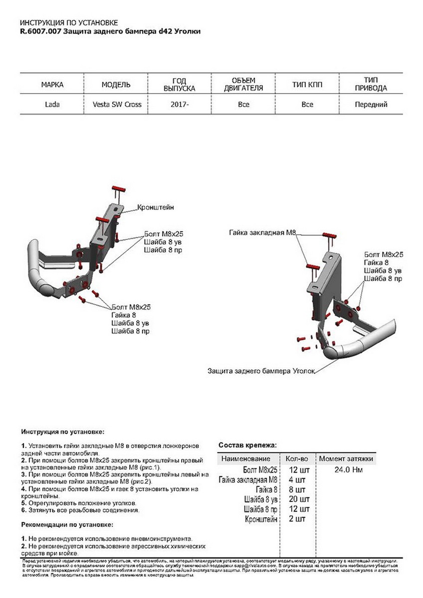 Фото Защита заднего бампера d42 уголки Lada Vesta SW Cross 2017-