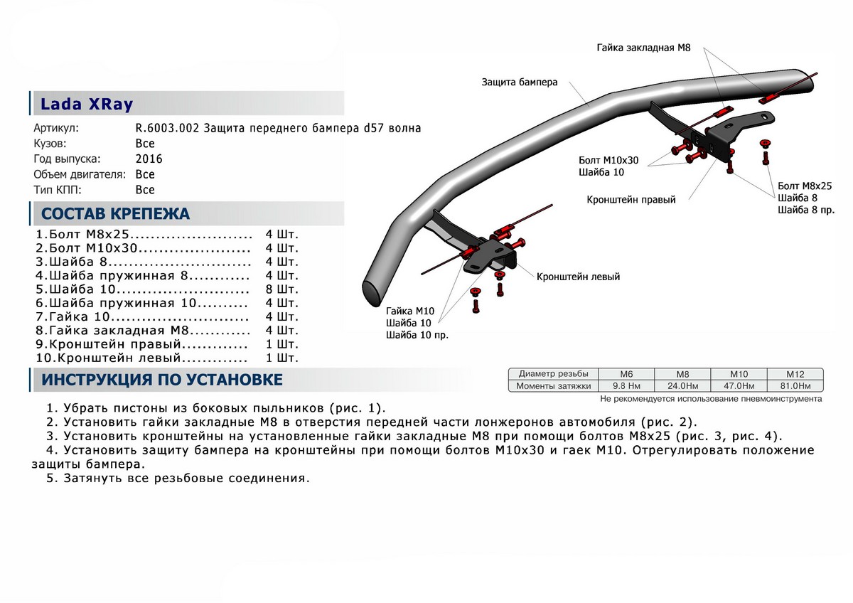 - Установка в штатные места крепления не требует дополнительной доработки автомобиля.