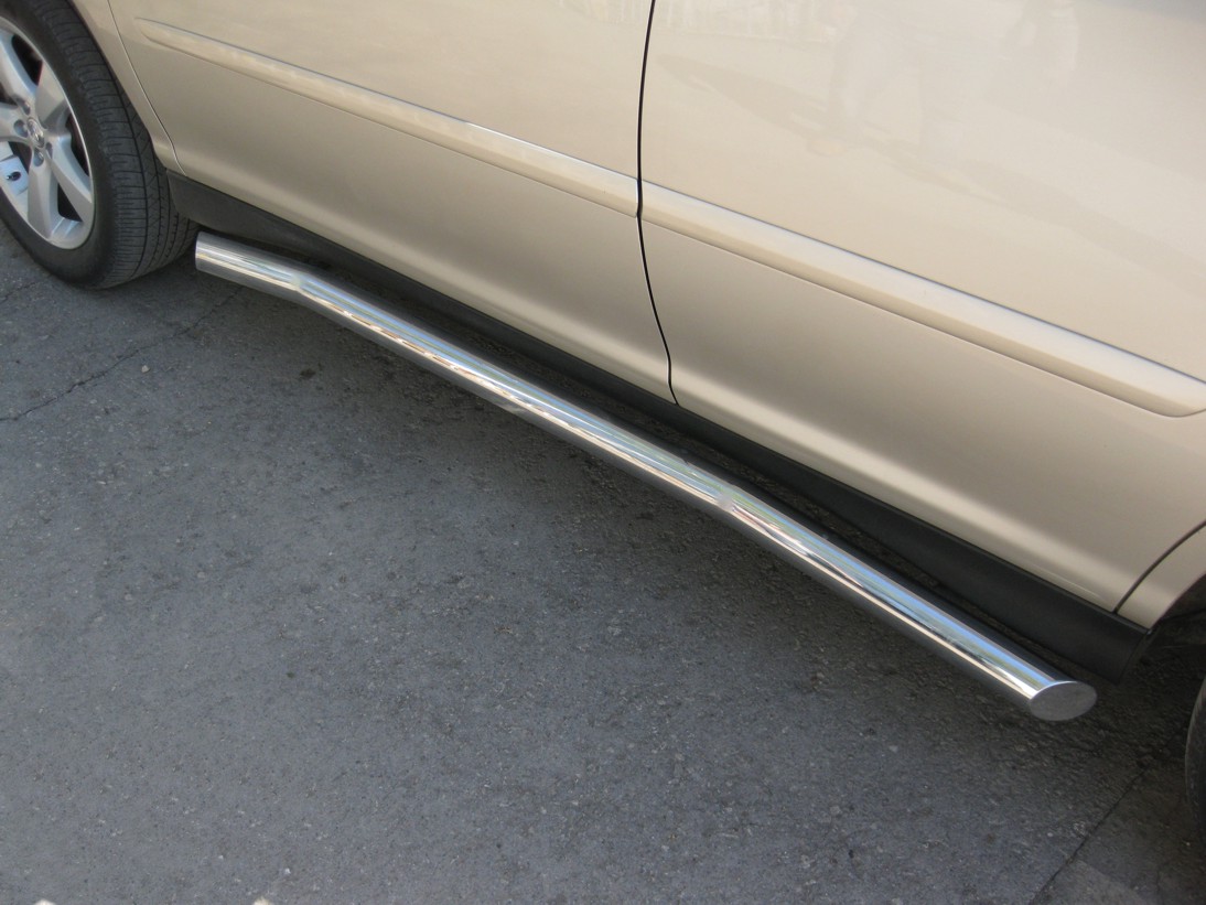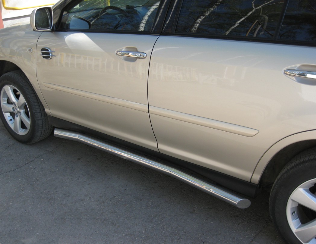 Lexus RX330 2003-2008 пороги труба d76 LRT-000395 производится из итальянской нержавеющей высококачественной полированной стали марки AISI 304. Идеально подходит по заводским параметрам, и устанавливается без дополнительных изменений в кузове. Вся продукция сертифицирована. Мы производим аксессуары с 2006 года. В распоряжении компании имеются собственные производственные площадки, поэтому вся работа производится без подрядчиков и посредников.
