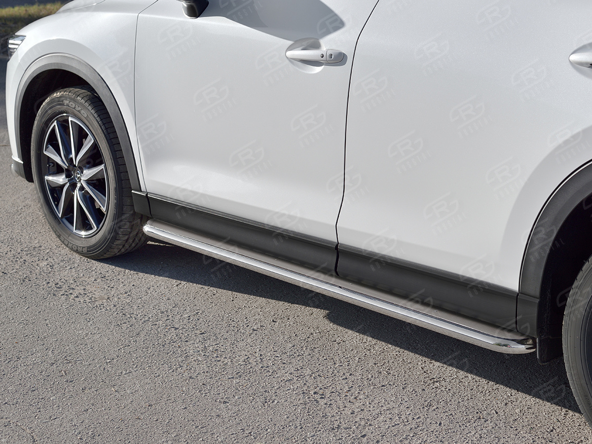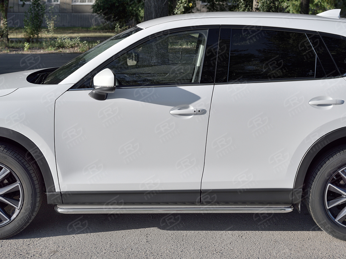 MAZDA CX-5 2017- Пороги труба d42 с листом (Лист нерж, проф. нерж) (вариант 3) M5L-0027963 производится из итальянской нержавеющей высококачественной полированной стали марки AISI 304. Идеально подходит по заводским параметрам, и устанавливается без дополнительных изменений в кузове. Вся продукция сертифицирована. Мы производим аксессуары с 2006 года. В распоряжении компании имеются собственные производственные площадки, поэтому вся работа производится без подрядчиков и посредников.