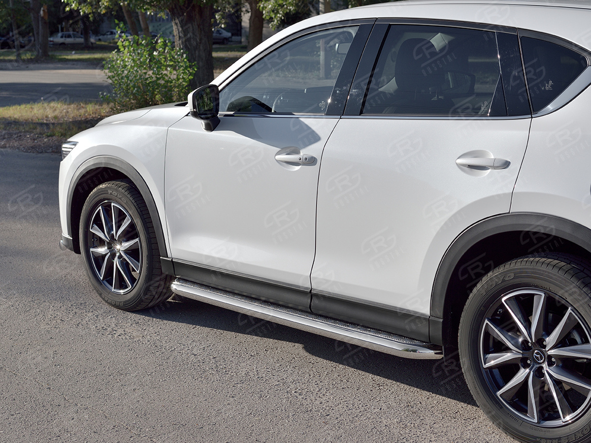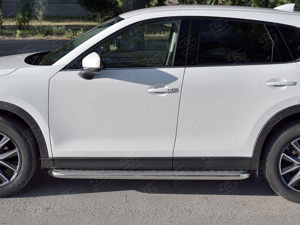 MAZDA CX-5 2017- Пороги труба d63 с листом (Лист алюм, проф. нерж) (вариант 1) M5L-0027971 производится из итальянской нержавеющей высококачественной полированной стали марки AISI 304. Идеально подходит по заводским параметрам, и устанавливается без дополнительных изменений в кузове. Вся продукция сертифицирована. Мы производим аксессуары с 2006 года. В распоряжении компании имеются собственные производственные площадки, поэтому вся работа производится без подрядчиков и посредников.