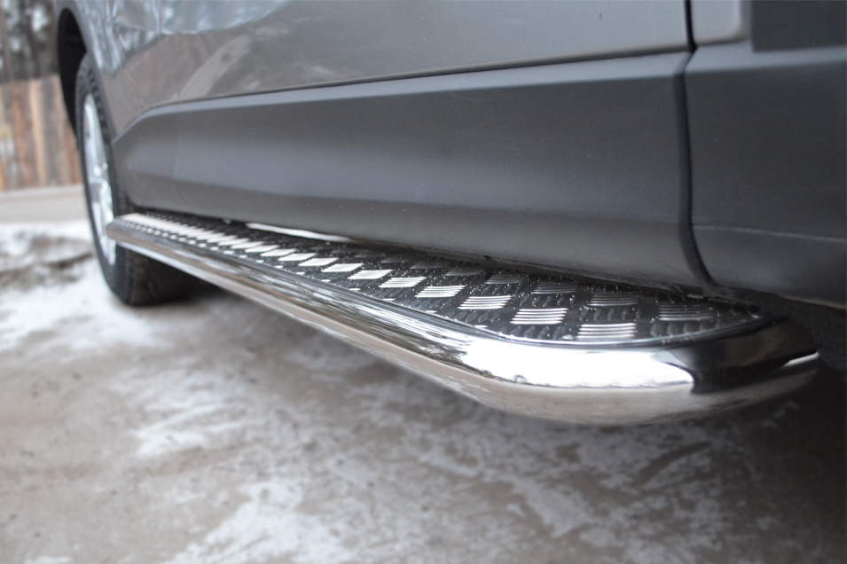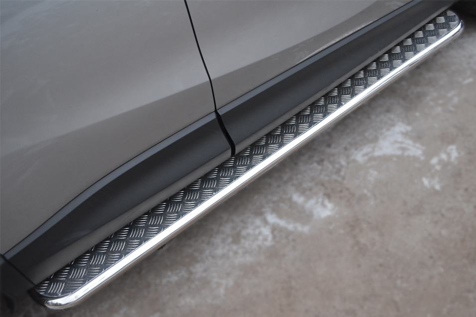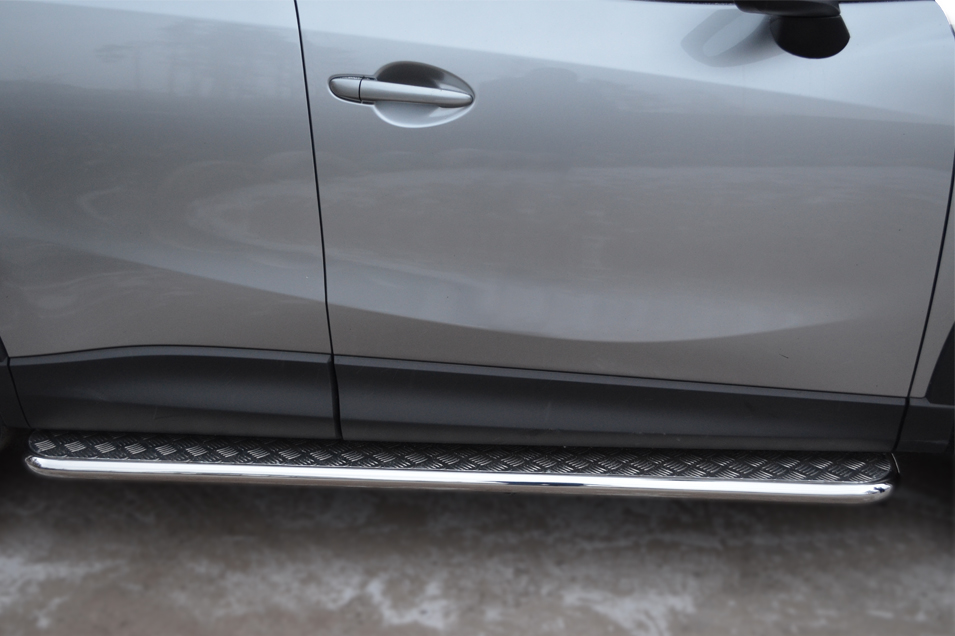 Mazda CX-5 2011-2016 Пороги труба d42 с листом (Лист алюм, проф. нерж) (Вариант1) M5L-001138 производится из итальянской нержавеющей высококачественной полированной стали марки AISI 304. Идеально подходит по заводским параметрам, и устанавливается без дополнительных изменений в кузове. Вся продукция сертифицирована. Мы производим аксессуары с 2006 года. В распоряжении компании имеются собственные производственные площадки, поэтому вся работа производится без подрядчиков и посредников.