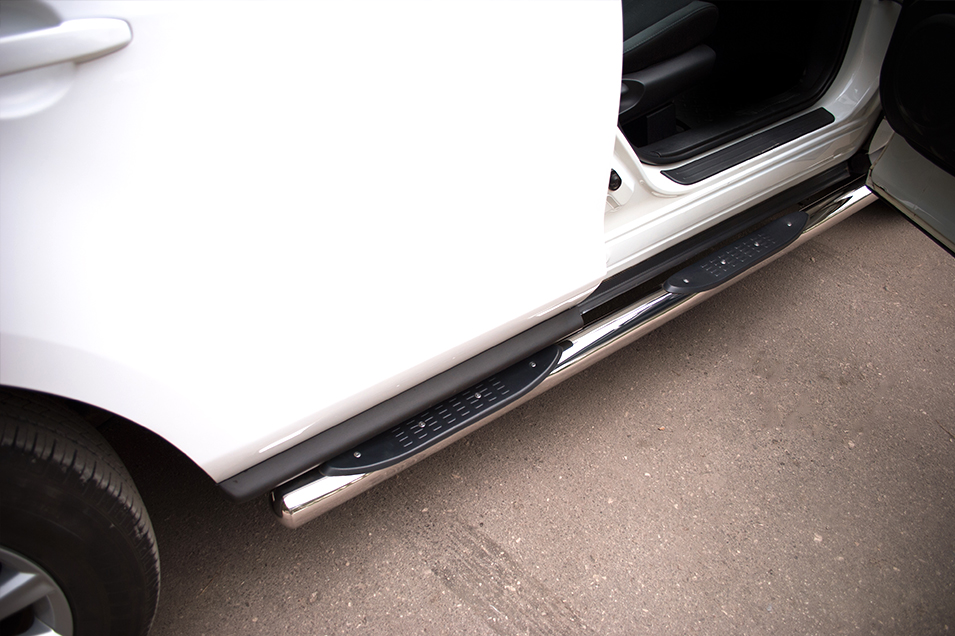 Mazda CX-7 2010-2013 Пороги труба d76 с накладками (вариант 3) MC7T-0006443 производится из итальянской нержавеющей высококачественной полированной стали марки AISI 304. Идеально подходит по заводским параметрам, и устанавливается без дополнительных изменений в кузове. Вся продукция сертифицирована. Мы производим аксессуары с 2006 года. В распоряжении компании имеются собственные производственные площадки, поэтому вся работа производится без подрядчиков и посредников.