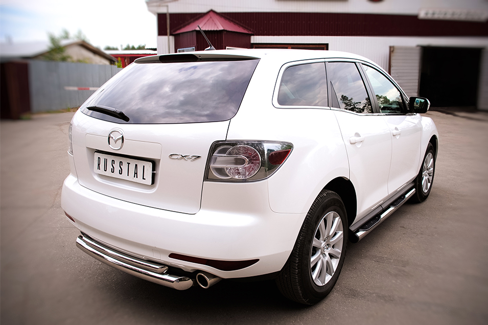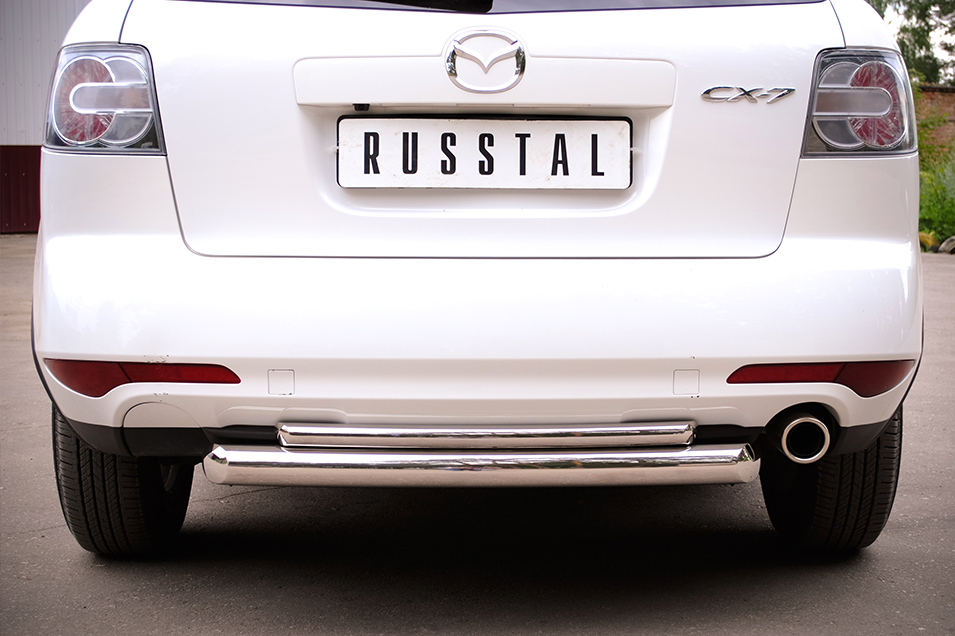 Mazda CX-7 2010-2013 Защита заднего бампера d76/42 (дуга) MC7Z-000650 производится из итальянской нержавеющей высококачественной полированной стали марки AISI 304. Идеально подходит по заводским параметрам, и устанавливается без дополнительных изменений в кузове. Вся продукция сертифицирована. Мы производим аксессуары с 2006 года. В распоряжении компании имеются собственные производственные площадки, поэтому вся работа производится без подрядчиков и посредников.