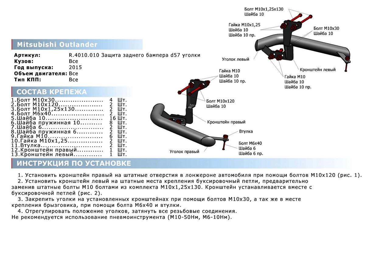 —Защита заднего бампера d57 уголки Mitsubishi Outlander 2015-