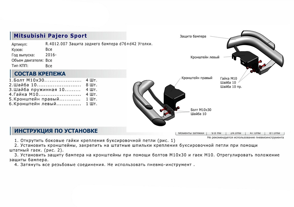- Установка в штатные места крепления не требует дополнительной доработки автомобиля.