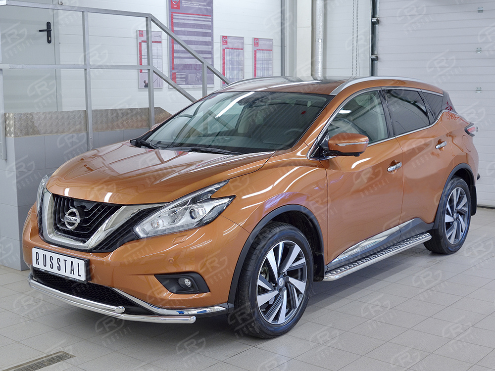 NISSAN MURANO 2016 Защита переднего бампера d42 секция-d42 дуга NMUZ-002405 производится из итальянской нержавеющей высококачественной полированной стали марки AISI 304. Идеально подходит по заводским параметрам, и устанавливается без дополнительных изменений в кузове. Вся продукция сертифицирована. Мы производим аксессуары с 2006 года. В распоряжении компании имеются собственные производственные площадки, поэтому вся работа производится без подрядчиков и посредников.