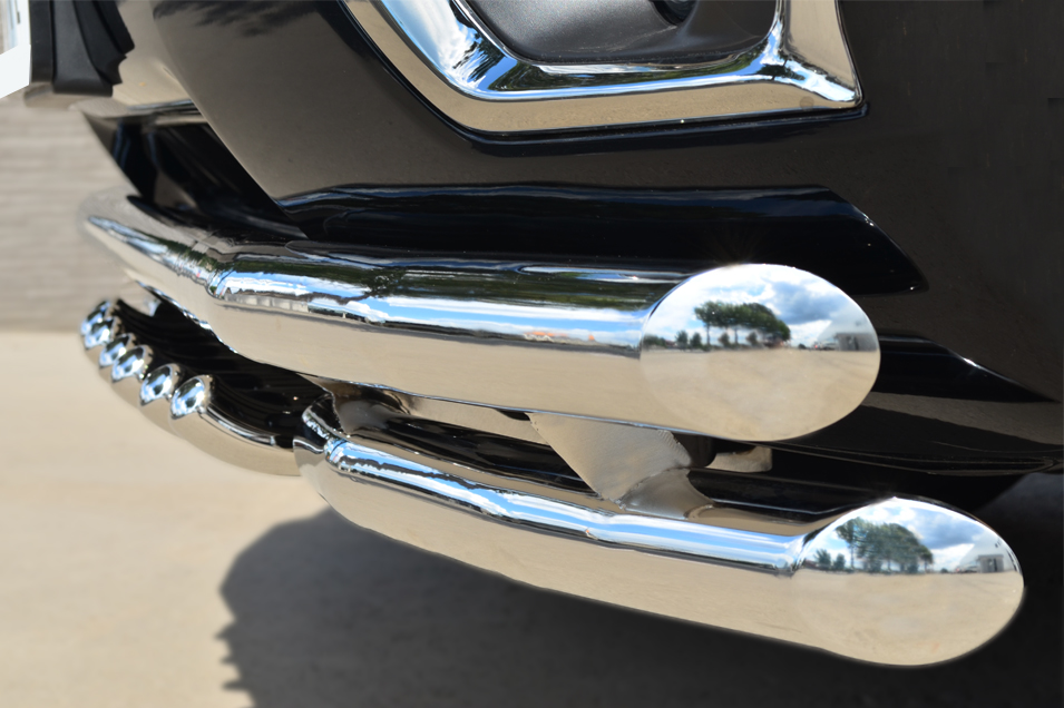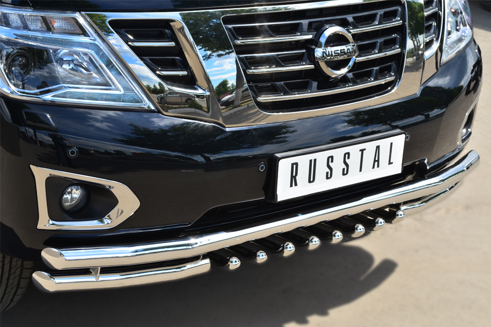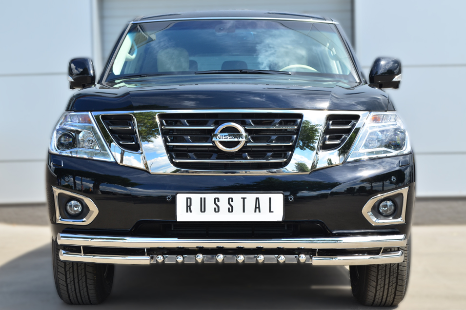 Nissan Patrol 2014- Защита переднего бампера d63 (секции) d63 (уголки)+d42 (зубы) PATZ-001726 производится из итальянской нержавеющей высококачественной полированной стали марки AISI 304. Идеально подходит по заводским параметрам, и устанавливается без дополнительных изменений в кузове. Вся продукция сертифицирована. Мы производим аксессуары с 2006 года. В распоряжении компании имеются собственные производственные площадки, поэтому вся работа производится без подрядчиков и посредников.