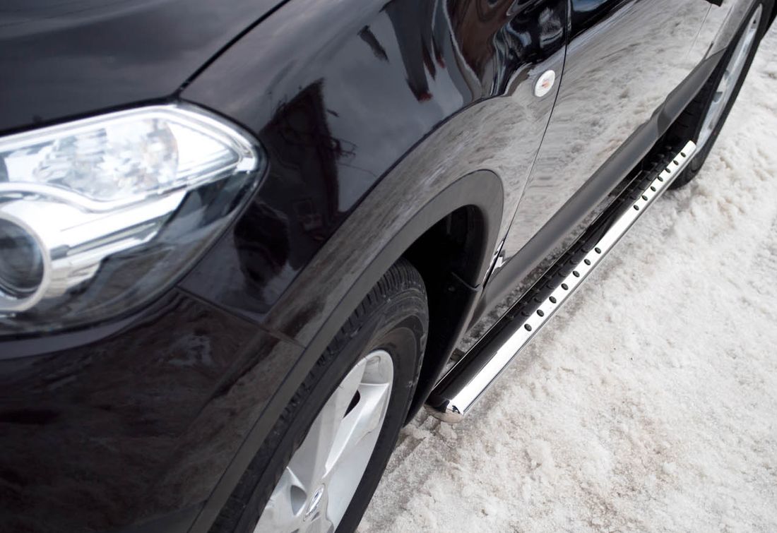 NISSAN Qashqai+2 2010-2013 пороги труба d75х42 овал с проступью QNO-001776 производится из итальянской нержавеющей высококачественной полированной стали марки AISI 304. Идеально подходит по заводским параметрам, и устанавливается без дополнительных изменений в кузове. Вся продукция сертифицирована. Мы производим аксессуары с 2006 года. В распоряжении компании имеются собственные производственные площадки, поэтому вся работа производится без подрядчиков и посредников.