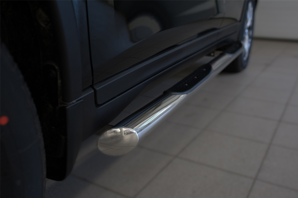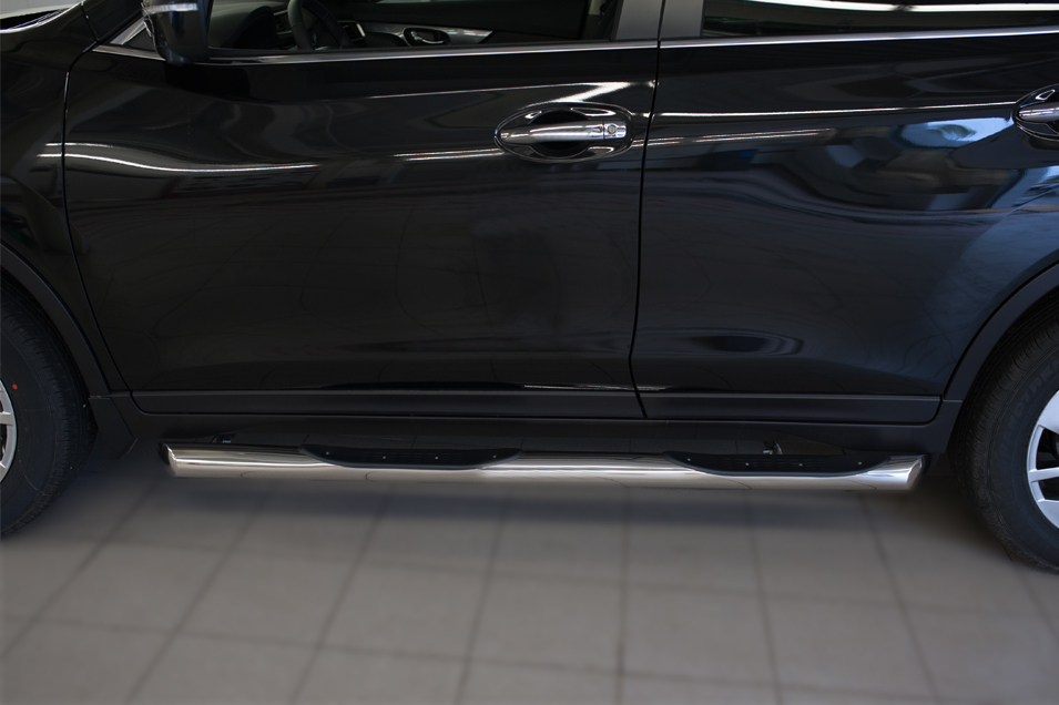 Nissan X-Trail 2015-2018 Пороги труба d76 с накладкой (вариант 1) NXT-0020871 производится из итальянской нержавеющей высококачественной полированной стали марки AISI 304. Идеально подходит по заводским параметрам, и устанавливается без дополнительных изменений в кузове. Вся продукция сертифицирована. Мы производим аксессуары с 2006 года. В распоряжении компании имеются собственные производственные площадки, поэтому вся работа производится без подрядчиков и посредников.