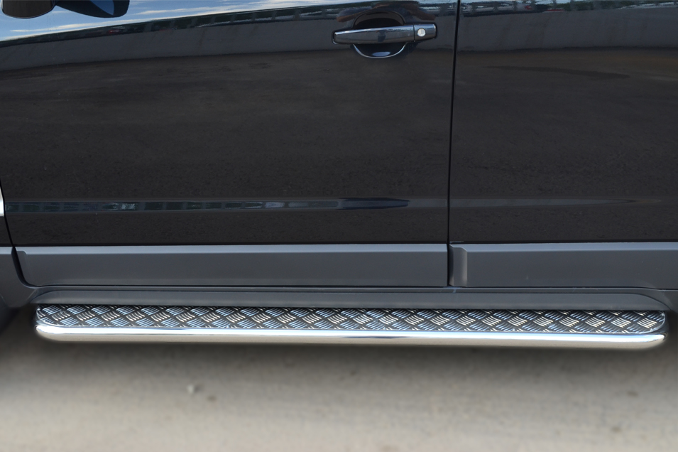 Opel Antara 2012- Пороги труба d42 с листом (Лист алюм,проф.нерж)(Вариант1) OAL-001370 производится из итальянской нержавеющей высококачественной полированной стали марки AISI 304. Идеально подходит по заводским параметрам, и устанавливается без дополнительных изменений в кузове. Вся продукция сертифицирована. Мы производим аксессуары с 2006 года. В распоряжении компании имеются собственные производственные площадки, поэтому вся работа производится без подрядчиков и посредников.