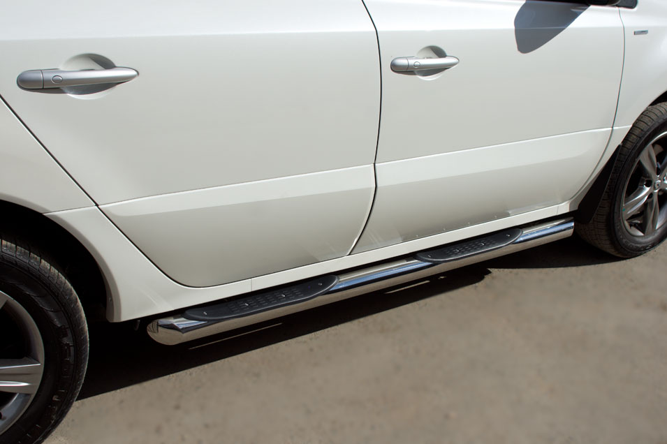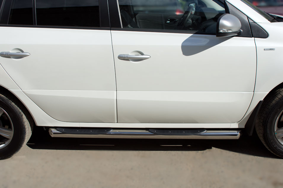 Renault Koleos 2012-2016 пороги труба d76 с накладками (вариант 1) RKT-0005861 производится из итальянской нержавеющей высококачественной полированной стали марки AISI 304. Идеально подходит по заводским параметрам, и устанавливается без дополнительных изменений в кузове. Вся продукция сертифицирована. Мы производим аксессуары с 2006 года. В распоряжении компании имеются собственные производственные площадки, поэтому вся работа производится без подрядчиков и посредников.