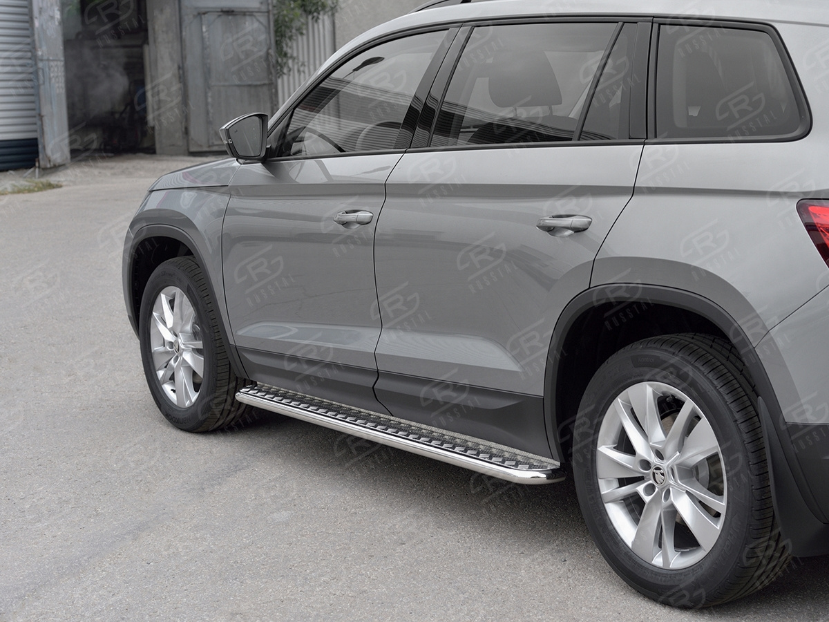 SKODA KODIAQ 2017- Пороги труба d42 с листом (Лист алюм, проф.сталь) (вариант 2) SKKL-0027732 производится из итальянской нержавеющей высококачественной полированной стали марки AISI 304. Идеально подходит по заводским параметрам, и устанавливается без дополнительных изменений в кузове. Вся продукция сертифицирована. Мы производим аксессуары с 2006 года. В распоряжении компании имеются собственные производственные площадки, поэтому вся работа производится без подрядчиков и посредников.