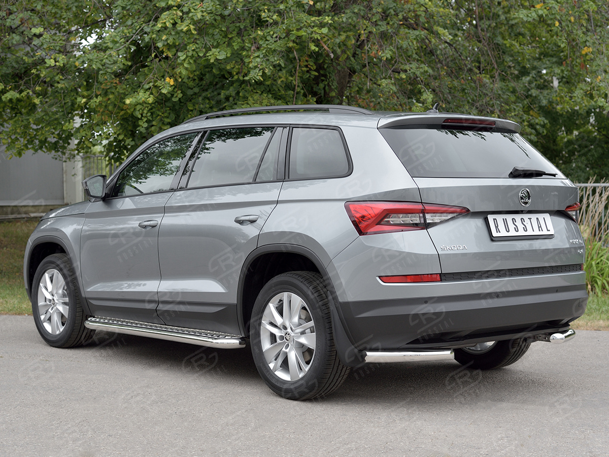 SKODA KODIAQ 2017- Защита заднего бампера уголки d63 секции SKKZ-002782 производится из итальянской нержавеющей высококачественной полированной стали марки AISI 304. Идеально подходит по заводским параметрам, и устанавливается без дополнительных изменений в кузове. Вся продукция сертифицирована. Мы производим аксессуары с 2006 года. В распоряжении компании имеются собственные производственные площадки, поэтому вся работа производится без подрядчиков и посредников.