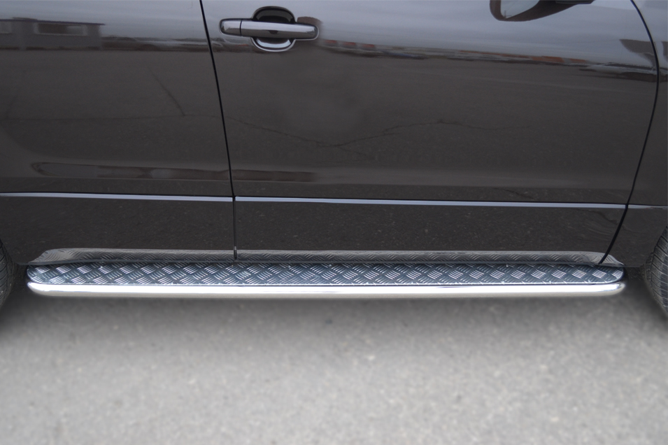 SUZUKI Grand Vitara 5 дв. 2012-2016 Пороги труба d42 с листом (Лист алюм,проф.нерж)(Вар1) SVL-001097 производится из итальянской нержавеющей высококачественной полированной стали марки AISI 304. Идеально подходит по заводским параметрам, и устанавливается без дополнительных изменений в кузове. Вся продукция сертифицирована. Мы производим аксессуары с 2006 года. В распоряжении компании имеются собственные производственные площадки, поэтому вся работа производится без подрядчиков и посредников.