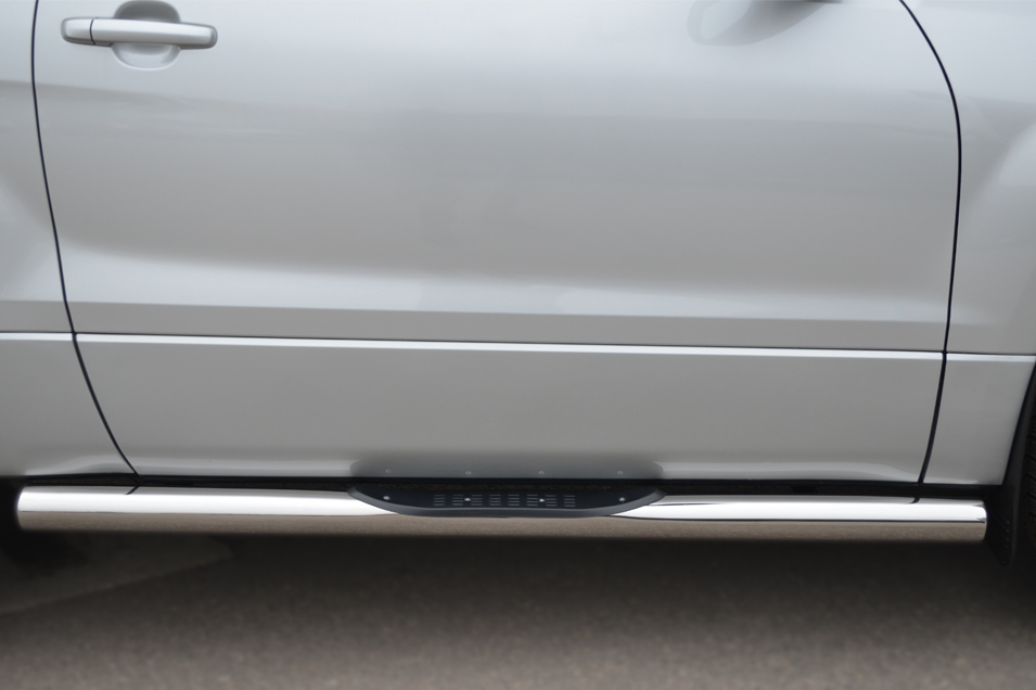 SUZUKI Grand Vitara 3дв. 2012-2016 Пороги труба d76 с накладками (вариант 3) SV3T-0011083 производится из итальянской нержавеющей высококачественной полированной стали марки AISI 304. Идеально подходит по заводским параметрам, и устанавливается без дополнительных изменений в кузове. Вся продукция сертифицирована. Мы производим аксессуары с 2006 года. В распоряжении компании имеются собственные производственные площадки, поэтому вся работа производится без подрядчиков и посредников.
