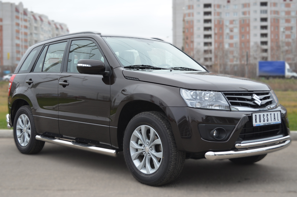 SUZUKI Grand Vitara 5 дв. 2012-2016 Пороги труба d76 с накладками (вариант 3) SVT-0010953 производится из итальянской нержавеющей высококачественной полированной стали марки AISI 304. Идеально подходит по заводским параметрам, и устанавливается без дополнительных изменений в кузове. Вся продукция сертифицирована. Мы производим аксессуары с 2006 года. В распоряжении компании имеются собственные производственные площадки, поэтому вся работа производится без подрядчиков и посредников.