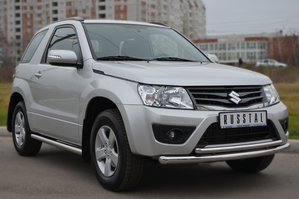 SUZUKI Grand Vitara 3дв. 2012-2016 Защита переднего бампера d63/42 (дуга) SV3Z-001103 производится из итальянской нержавеющей высококачественной полированной стали марки AISI 304. Идеально подходит по заводским параметрам, и устанавливается без дополнительных изменений в кузове. Вся продукция сертифицирована. Мы производим аксессуары с 2006 года. В распоряжении компании имеются собственные производственные площадки, поэтому вся работа производится без подрядчиков и посредников.