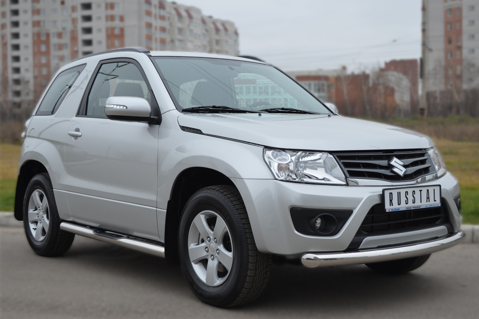 SUZUKI Grand Vitara 3дв. 2012-2016 Защита переднего бампера d76 (дуга) SV3Z-001104 производится из итальянской нержавеющей высококачественной полированной стали марки AISI 304. Идеально подходит по заводским параметрам, и устанавливается без дополнительных изменений в кузове. Вся продукция сертифицирована. Мы производим аксессуары с 2006 года. В распоряжении компании имеются собственные производственные площадки, поэтому вся работа производится без подрядчиков и посредников.