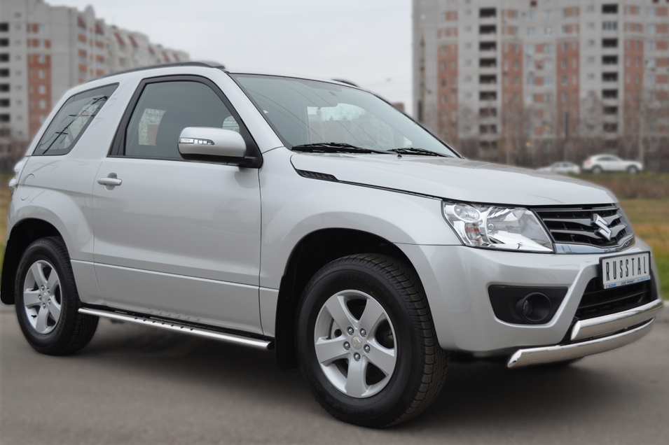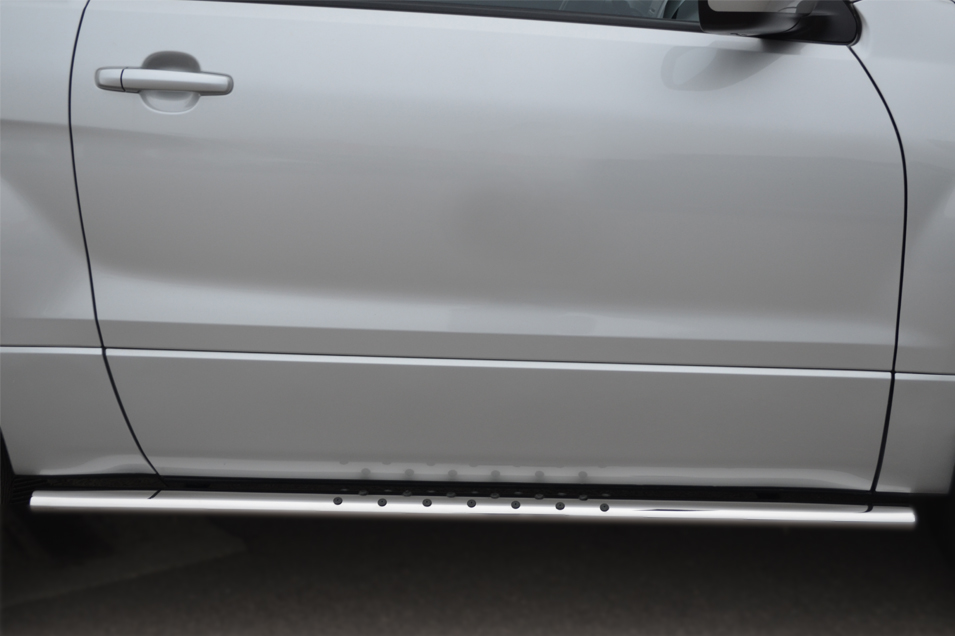 SUZUKI Grand Vitara 3дв. 2012-2016 Защита порогов 75х42 с проступью SV3O-001109 производится из итальянской нержавеющей высококачественной полированной стали марки AISI 304. Идеально подходит по заводским параметрам, и устанавливается без дополнительных изменений в кузове. Вся продукция сертифицирована. Мы производим аксессуары с 2006 года. В распоряжении компании имеются собственные производственные площадки, поэтому вся работа производится без подрядчиков и посредников.