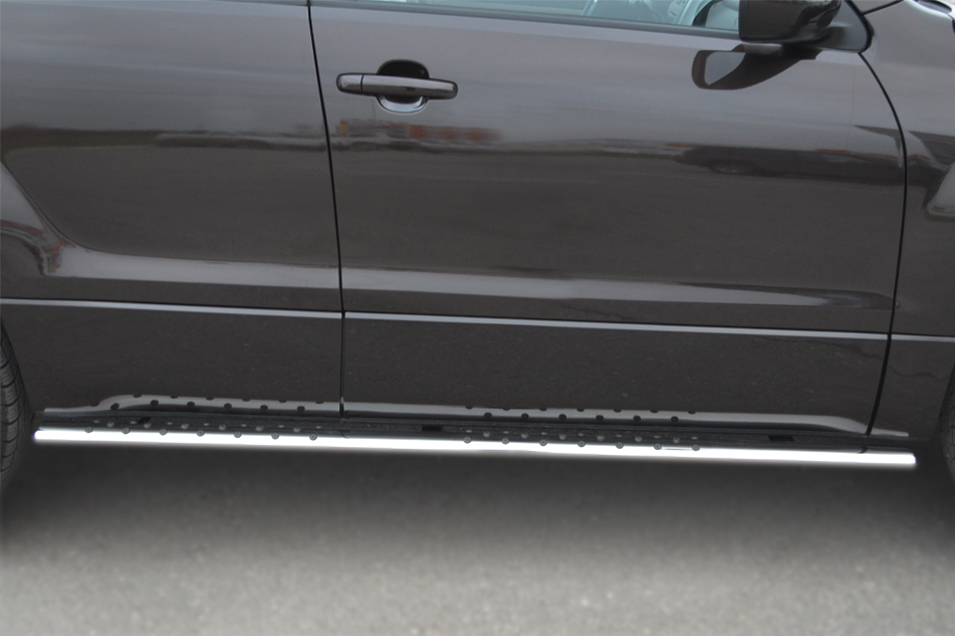 SUZUKI Grand Vitara 5 дв. 2012-2016 Защита порогов 75х42 с проступью SVO-001096 производится из итальянской нержавеющей высококачественной полированной стали марки AISI 304. Идеально подходит по заводским параметрам, и устанавливается без дополнительных изменений в кузове. Вся продукция сертифицирована. Мы производим аксессуары с 2006 года. В распоряжении компании имеются собственные производственные площадки, поэтому вся работа производится без подрядчиков и посредников.