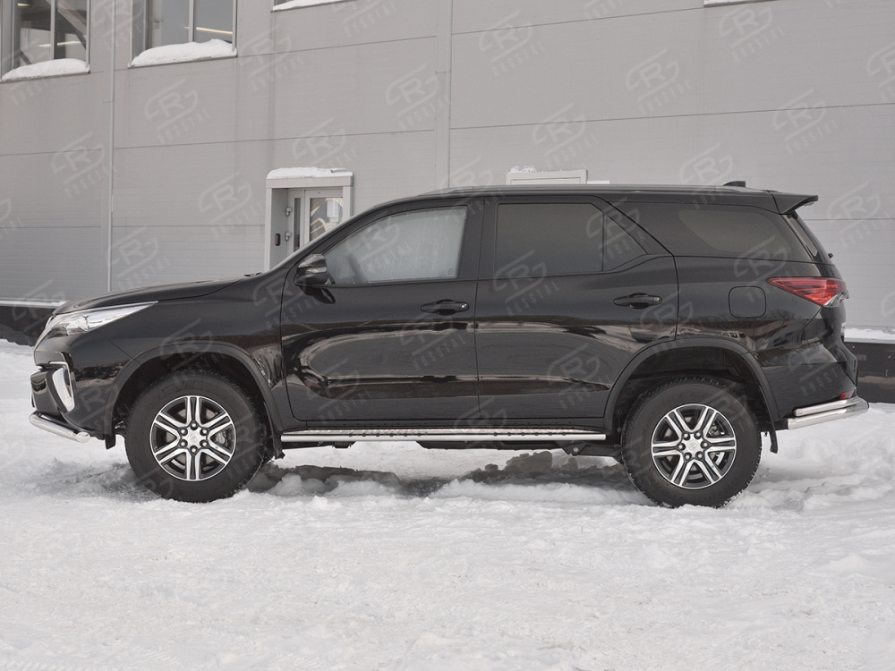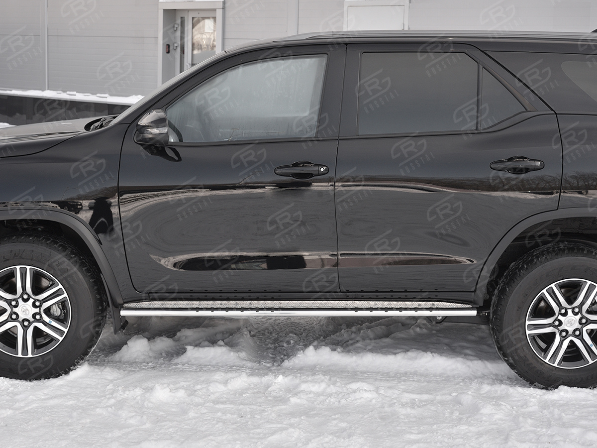 TOYOTA FORTUNER 2017- Пороги труба 75х42 овал с проступью(Лист алюм пыльник) TFO-002885 производится из итальянской нержавеющей высококачественной полированной стали марки AISI 304. Идеально подходит по заводским параметрам, и устанавливается без дополнительных изменений в кузове. Вся продукция сертифицирована. Мы производим аксессуары с 2006 года. В распоряжении компании имеются собственные производственные площадки, поэтому вся работа производится без подрядчиков и посредников.