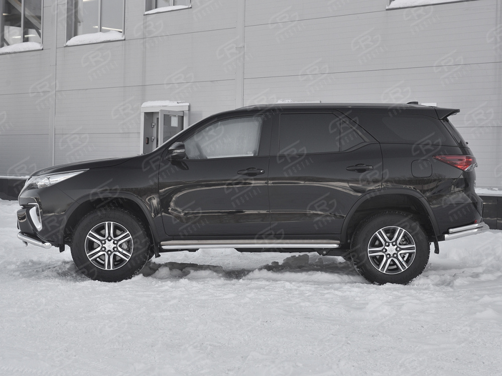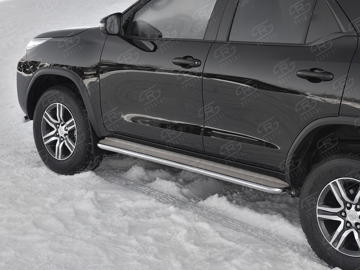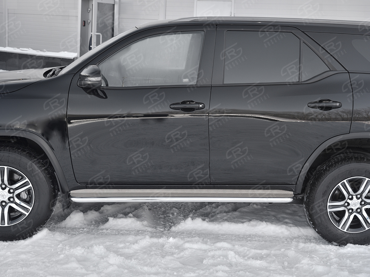 TOYOTA FORTUNER 2017- Пороги труба d42 с листом (Лист нерж, проф. нерж) (вариант 3) TFL-0028823 производится из итальянской нержавеющей высококачественной полированной стали марки AISI 304. Идеально подходит по заводским параметрам, и устанавливается без дополнительных изменений в кузове. Вся продукция сертифицирована. Мы производим аксессуары с 2006 года. В распоряжении компании имеются собственные производственные площадки, поэтому вся работа производится без подрядчиков и посредников.