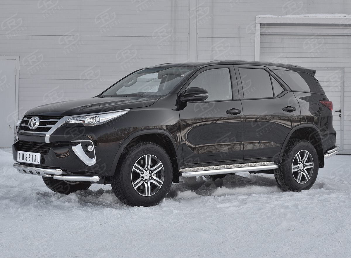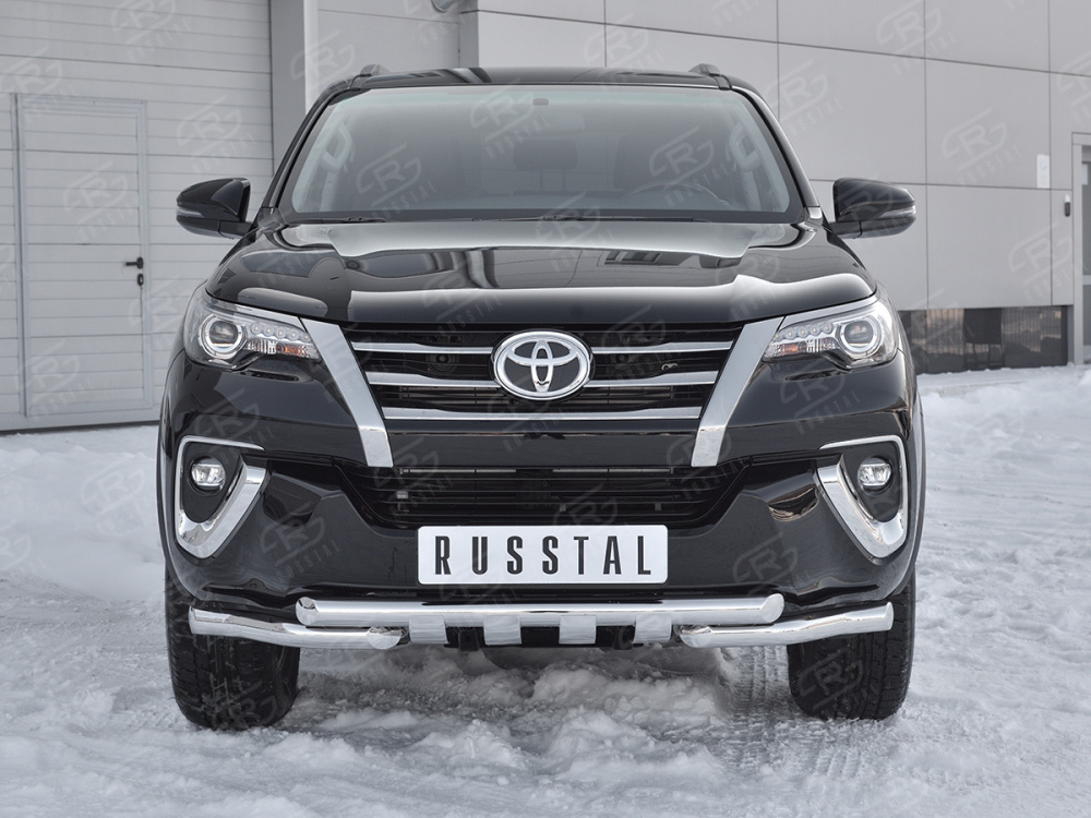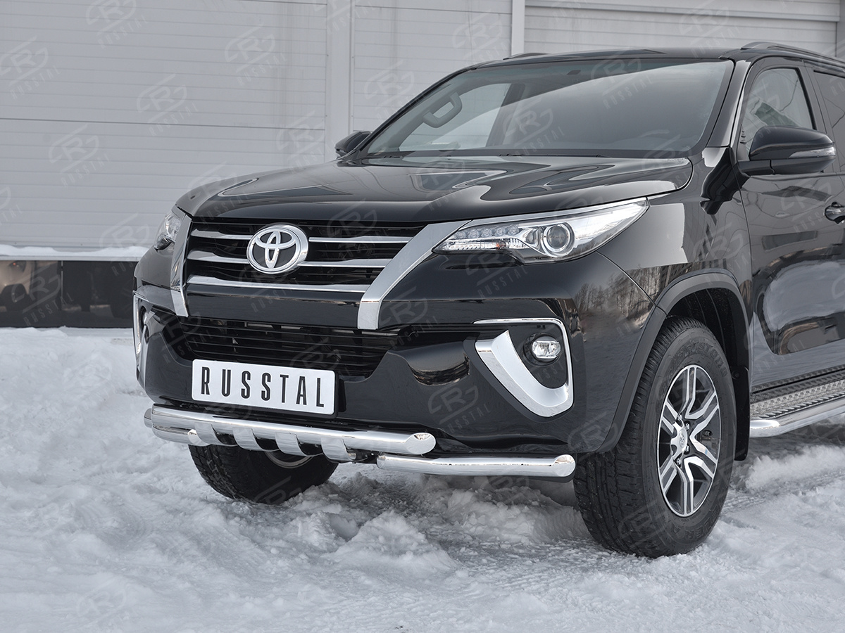 TOYOTA FORTUNER 2017- Защита переднего бампера d63 дуга-d63 уголки+клыки TFZ-002879 производится из итальянской нержавеющей высококачественной полированной стали марки AISI 304. Идеально подходит по заводским параметрам, и устанавливается без дополнительных изменений в кузове. Вся продукция сертифицирована. Мы производим аксессуары с 2006 года. В распоряжении компании имеются собственные производственные площадки, поэтому вся работа производится без подрядчиков и посредников.