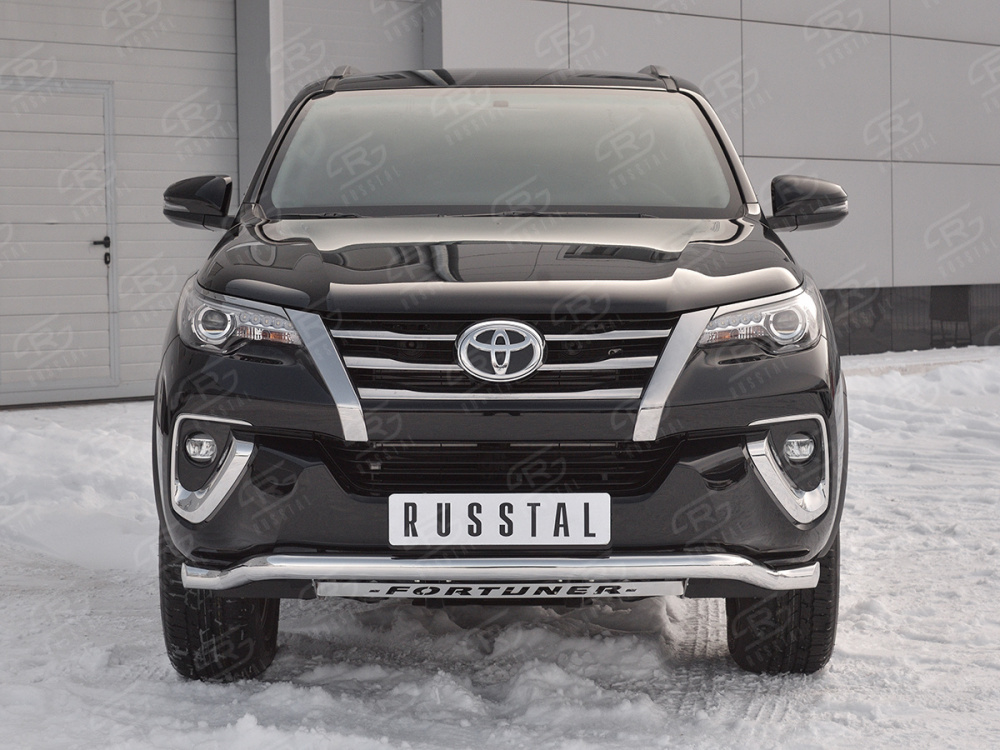 TOYOTA FORTUNER 2017- Защита переднего бампера d63 волна с надписью TFZ-002878 производится из итальянской нержавеющей высококачественной полированной стали марки AISI 304. Идеально подходит по заводским параметрам, и устанавливается без дополнительных изменений в кузове. Вся продукция сертифицирована. Мы производим аксессуары с 2006 года. В распоряжении компании имеются собственные производственные площадки, поэтому вся работа производится без подрядчиков и посредников.