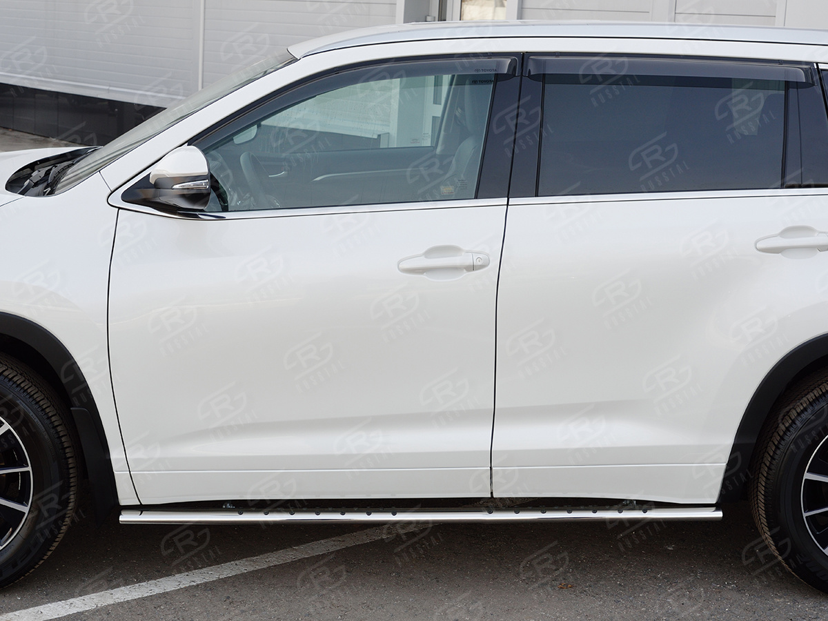 TOYOTA HIGHLANDER 2017 Пороги труба 75х42 овал с проступью THRO-002620 производится из итальянской нержавеющей высококачественной полированной стали марки AISI 304. Идеально подходит по заводским параметрам, и устанавливается без дополнительных изменений в кузове. Вся продукция сертифицирована. Мы производим аксессуары с 2006 года. В распоряжении компании имеются собственные производственные площадки, поэтому вся работа производится без подрядчиков и посредников.