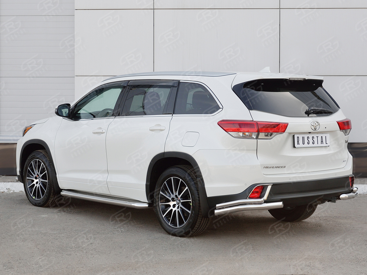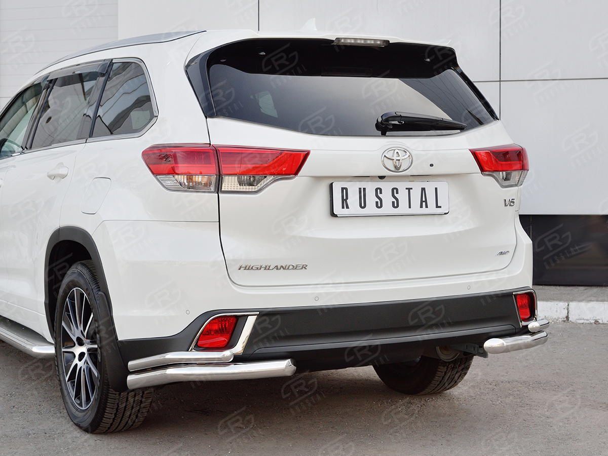 TOYOTA HIGHLANDER 2017 Защита заднего бампера уголки d63 секции-d42 секции THRZ-002629 производится из итальянской нержавеющей высококачественной полированной стали марки AISI 304. Идеально подходит по заводским параметрам, и устанавливается без дополнительных изменений в кузове. Вся продукция сертифицирована. Мы производим аксессуары с 2006 года. В распоряжении компании имеются собственные производственные площадки, поэтому вся работа производится без подрядчиков и посредников.