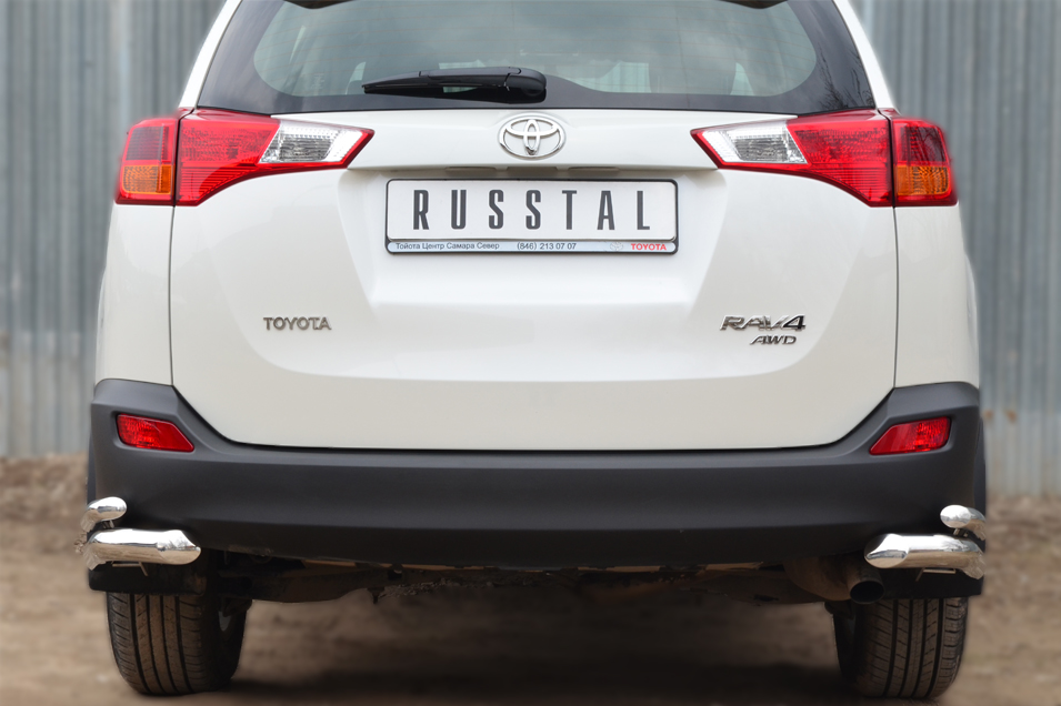 Toyota RAV 4 2013-2015 Защита заднего бампера уголки d63 (секции) d42(секции) TR4Z-001288 производится из итальянской нержавеющей высококачественной полированной стали марки AISI 304. Идеально подходит по заводским параметрам, и устанавливается без дополнительных изменений в кузове. Вся продукция сертифицирована. Мы производим аксессуары с 2006 года. В распоряжении компании имеются собственные производственные площадки, поэтому вся работа производится без подрядчиков и посредников.