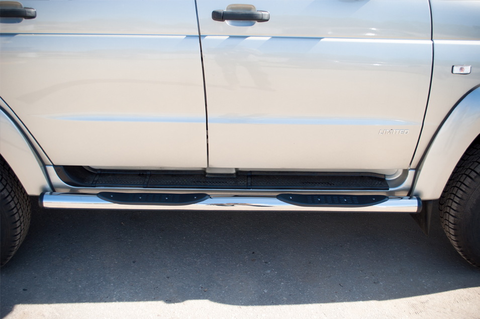 UAZ Patriot 2005-2013 пороги труба d76 с накладками (вариант 2) UPT-0005052 производится из итальянской нержавеющей высококачественной полированной стали марки AISI 304. Идеально подходит по заводским параметрам, и устанавливается без дополнительных изменений в кузове. Вся продукция сертифицирована. Мы производим аксессуары с 2006 года. В распоряжении компании имеются собственные производственные площадки, поэтому вся работа производится без подрядчиков и посредников.