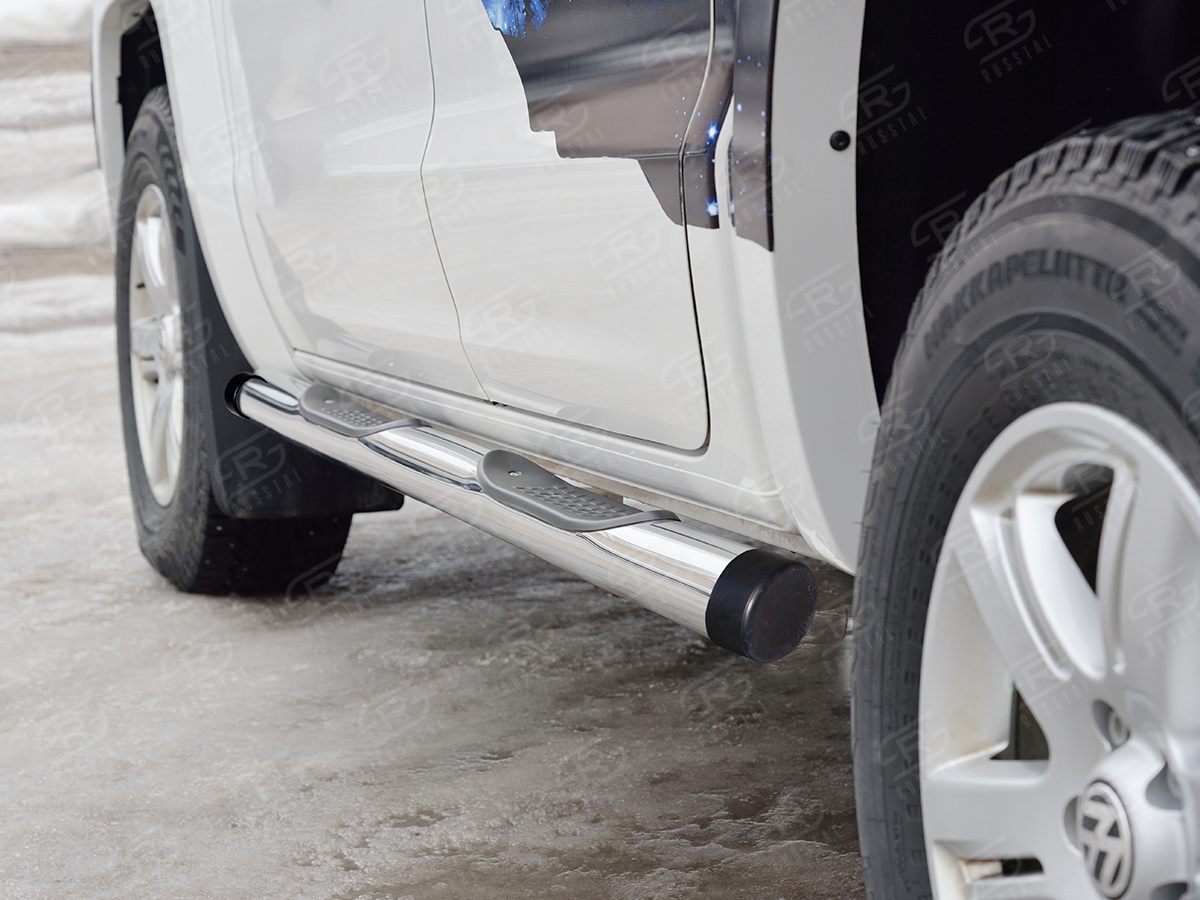 VOLKSWAGEN AMAROK 2016- Пороги труба d76 с накладкой (вариант 2) VAMT-0025402 производится из итальянской нержавеющей высококачественной полированной стали марки AISI 304. Идеально подходит по заводским параметрам, и устанавливается без дополнительных изменений в кузове. Вся продукция сертифицирована. Мы производим аксессуары с 2006 года. В распоряжении компании имеются собственные производственные площадки, поэтому вся работа производится без подрядчиков и посредников.