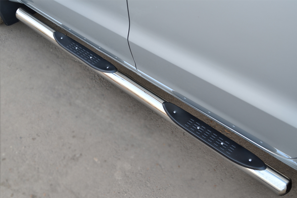 VOLKSWAGEN Amarok 2009-2015 Пороги труба d76 с накладкой (вариант 3) VAKT-0015633 производится из итальянской нержавеющей высококачественной полированной стали марки AISI 304. Идеально подходит по заводским параметрам, и устанавливается без дополнительных изменений в кузове. Вся продукция сертифицирована. Мы производим аксессуары с 2006 года. В распоряжении компании имеются собственные производственные площадки, поэтому вся работа производится без подрядчиков и посредников.