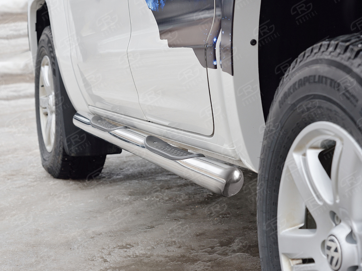 VOLKSWAGEN AMAROK 2016- Пороги труба d76 с накладкой (вариант 3) VAMT-0025403 производится из итальянской нержавеющей высококачественной полированной стали марки AISI 304. Идеально подходит по заводским параметрам, и устанавливается без дополнительных изменений в кузове. Вся продукция сертифицирована. Мы производим аксессуары с 2006 года. В распоряжении компании имеются собственные производственные площадки, поэтому вся работа производится без подрядчиков и посредников.