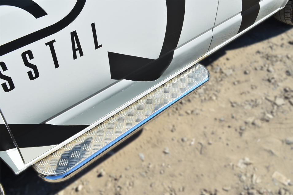 VOLKSWAGEN Multivan/Caravelle 2010-2015 Пороги труба d42 с листом (Лист алюм,проф.нерж)(1) VTKL-001399 производится из итальянской нержавеющей высококачественной полированной стали марки AISI 304. Идеально подходит по заводским параметрам, и устанавливается без дополнительных изменений в кузове. Вся продукция сертифицирована. Мы производим аксессуары с 2006 года. В распоряжении компании имеются собственные производственные площадки, поэтому вся работа производится без подрядчиков и посредников.