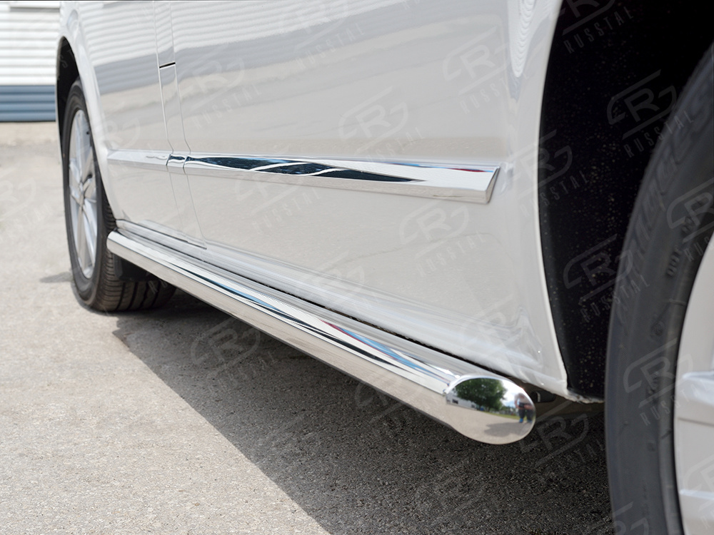 VOLKSWAGEN Multivan Caravella Transporter Т6 2016 (короткая база) Пороги труба d63 правый (вариант 1) VCTT-0023171 производится из итальянской нержавеющей высококачественной полированной стали марки AISI 304. Идеально подходит по заводским параметрам, и устанавливается без дополнительных изменений в кузове. Вся продукция сертифицирована. Мы производим аксессуары с 2006 года. В распоряжении компании имеются собственные производственные площадки, поэтому вся работа производится без подрядчиков и посредников.