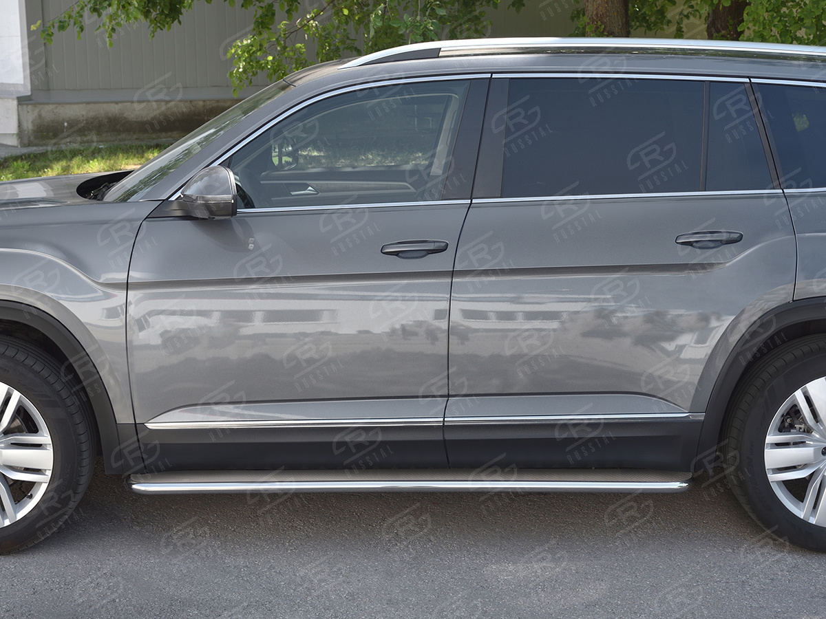 VOLKSWAGEN TERAMONT 2017- Пороги труба d42 с листом (Лист нерж, проф.нерж) (вариант 3) VTML-0029933 производится из итальянской нержавеющей высококачественной полированной стали марки AISI 304. Идеально подходит по заводским параметрам, и устанавливается без дополнительных изменений в кузове. Вся продукция сертифицирована. Мы производим аксессуары с 2006 года. В распоряжении компании имеются собственные производственные площадки, поэтому вся работа производится без подрядчиков и посредников.