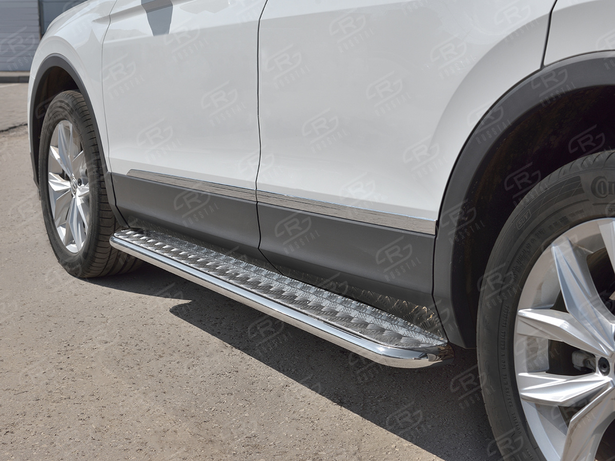 VOLKSWAGEN TIGUAN 2017- Пороги труба d42 с листом (Лист алюм, проф.сталь) (вариант 2) VGL-0027192 производится из итальянской нержавеющей высококачественной полированной стали марки AISI 304. Идеально подходит по заводским параметрам, и устанавливается без дополнительных изменений в кузове. Вся продукция сертифицирована. Мы производим аксессуары с 2006 года. В распоряжении компании имеются собственные производственные площадки, поэтому вся работа производится без подрядчиков и посредников.