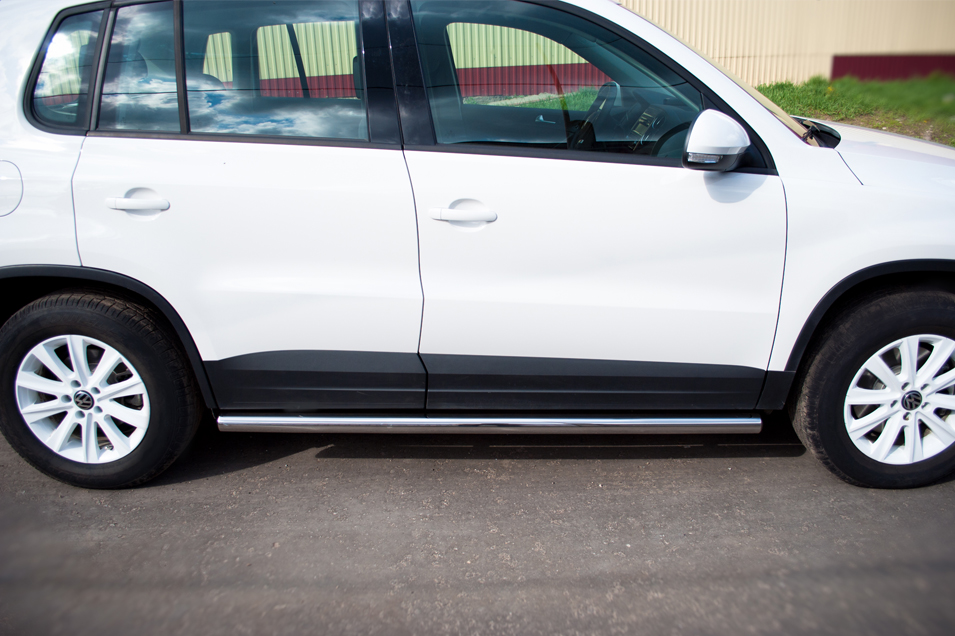VolksWagen Tiguan Track & Field 2011-2016 Пороги труба d63 (вариант 3) VGT-0004933 производится из итальянской нержавеющей высококачественной полированной стали марки AISI 304. Идеально подходит по заводским параметрам, и устанавливается без дополнительных изменений в кузове. Вся продукция сертифицирована. Мы производим аксессуары с 2006 года. В распоряжении компании имеются собственные производственные площадки, поэтому вся работа производится без подрядчиков и посредников.