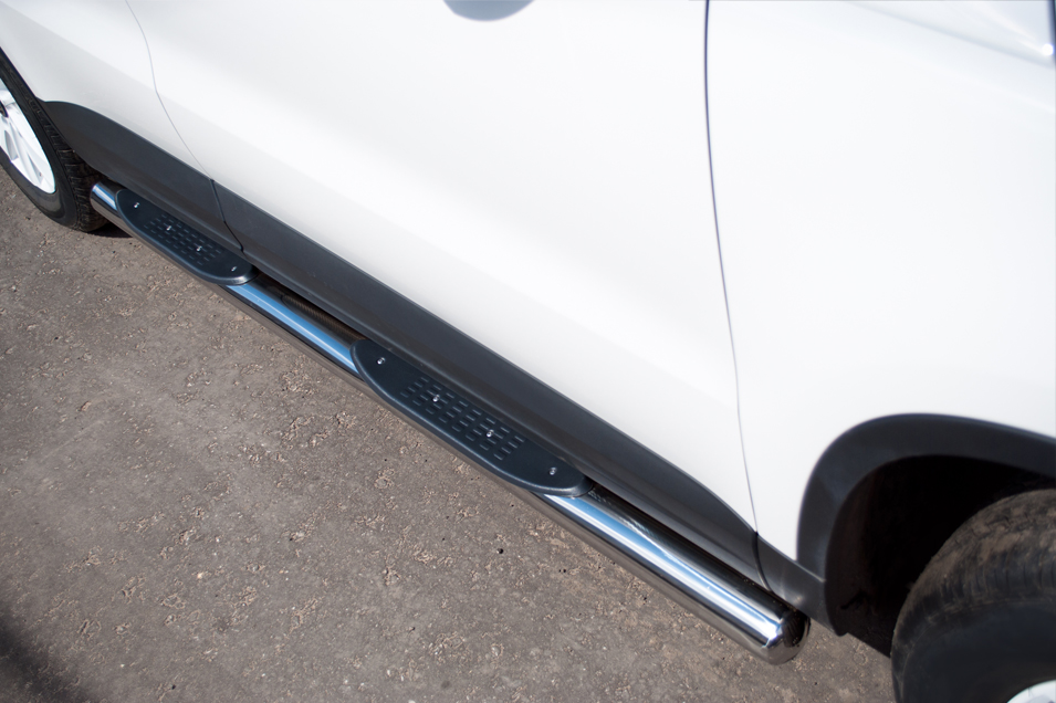 VolksWagen Tiguan Track & Field 2011-2016 Пороги труба d76 с накладками (вариант 3) VGT-0004943 производится из итальянской нержавеющей высококачественной полированной стали марки AISI 304. Идеально подходит по заводским параметрам, и устанавливается без дополнительных изменений в кузове. Вся продукция сертифицирована. Мы производим аксессуары с 2006 года. В распоряжении компании имеются собственные производственные площадки, поэтому вся работа производится без подрядчиков и посредников.